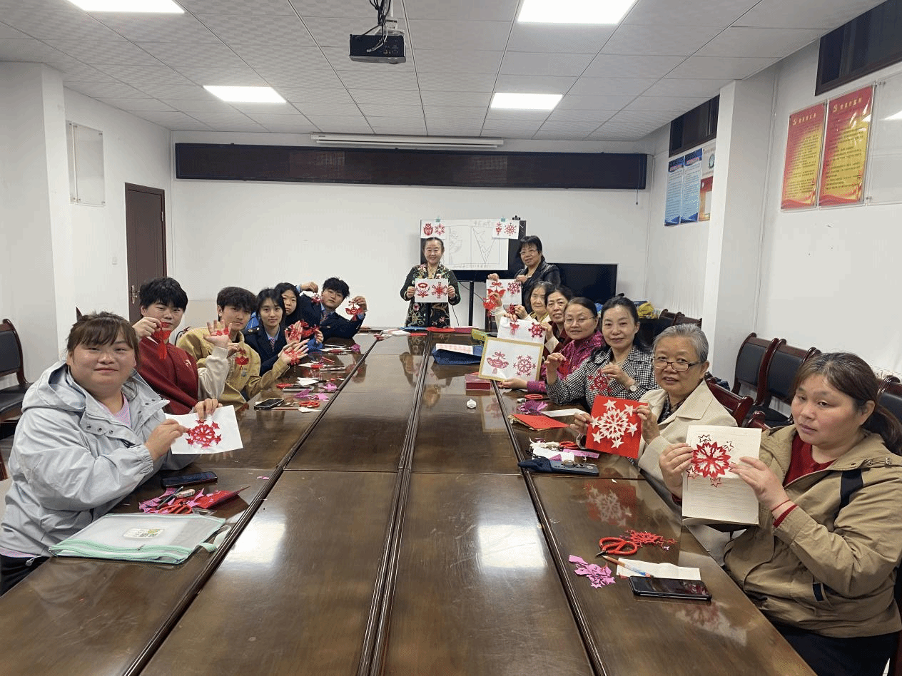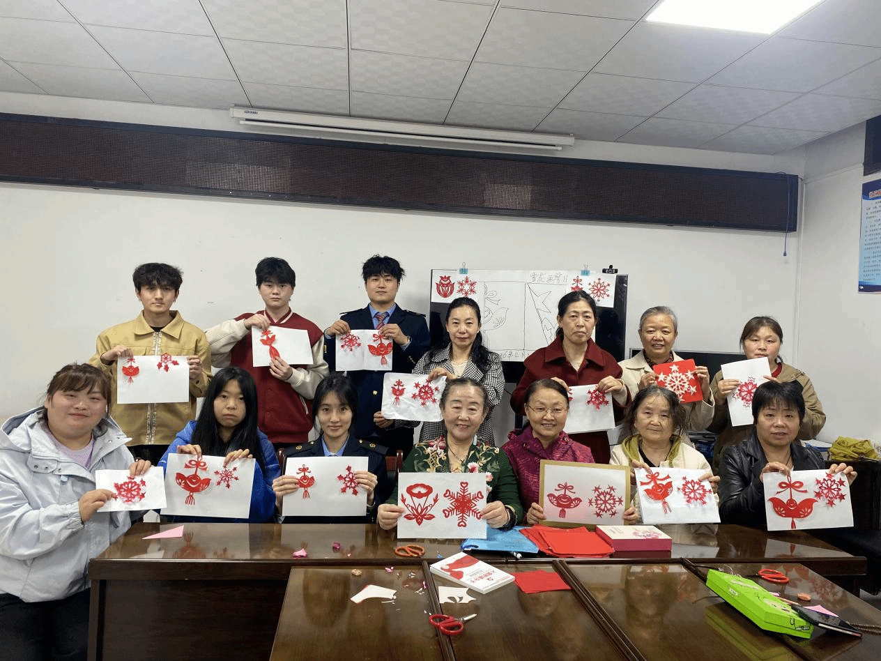 4月21日下午,为传承中华优秀传统文化,推动非遗文化走进社区,我院学子走进社区,与居民共同开展了一场别开生面的非遗剪纸体验活动。同学们与社区居民围坐一堂,在老师的指导下认真学习剪纸技巧。大家手持剪刀,红纸翻飞间,一幅幅精巧的雪花、花鸟剪纸作品陆续呈现。老少携手、师生互动,现场洋溢着温馨热闹的氛围。此次活动不仅丰富了社区居民的文化生活,也让我院学子在实践中深刻体会到非遗文化的独特魅力,展现了青年一代传承非遗、服务社会的责任与担当。
